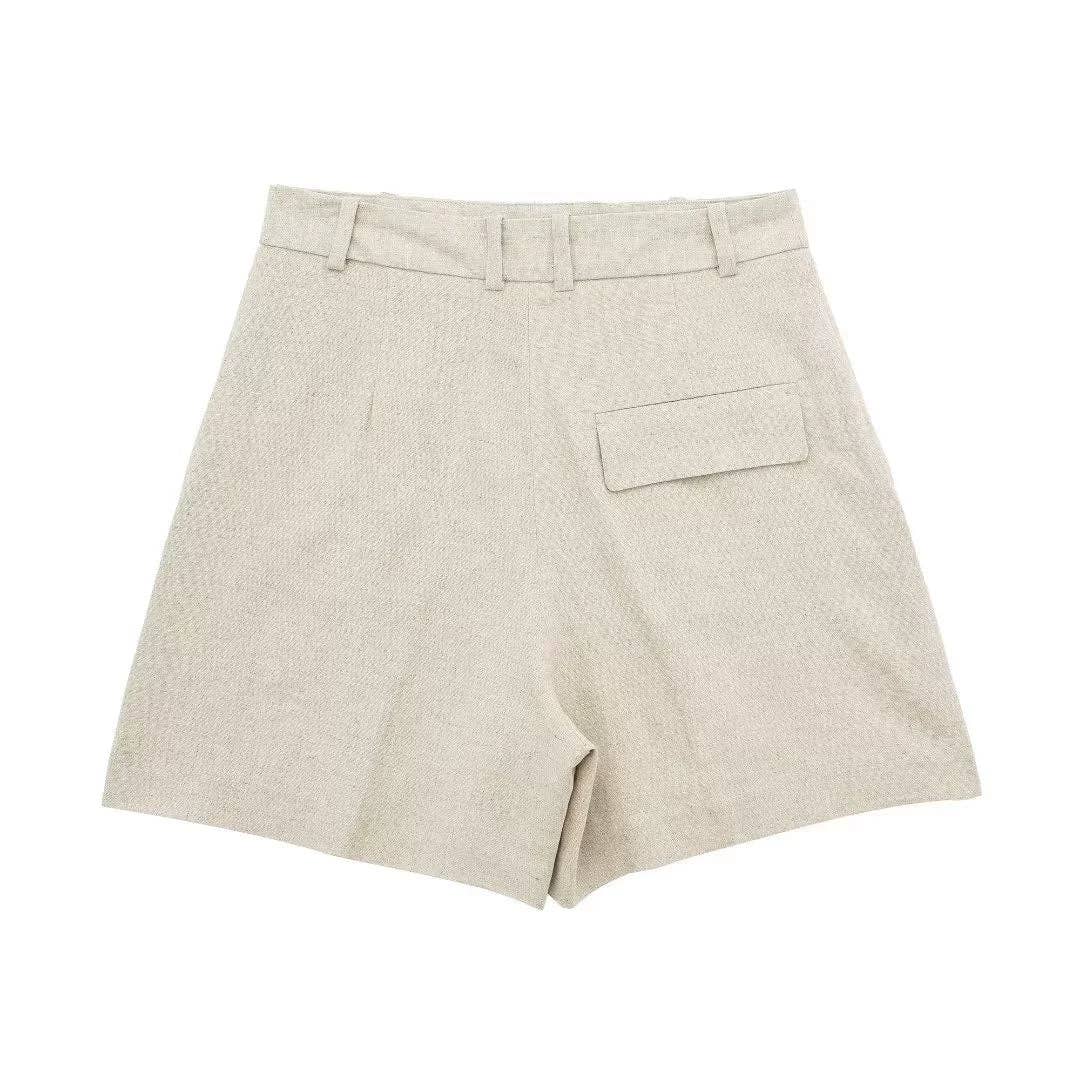 This ladies' solid color v-neck set in light beige offers a versatile and elegant addition to your wardrobe. Crafted with attention to fit, the medium-sized vest and shorts combination provides a comfortable, flattering silhouette. The clean lines and neutral tone make it ideal for layering or wearing alone, suitable for both casual and refined settings. Its minimalist design ensures effortless styling while maintaining a polished appearance.