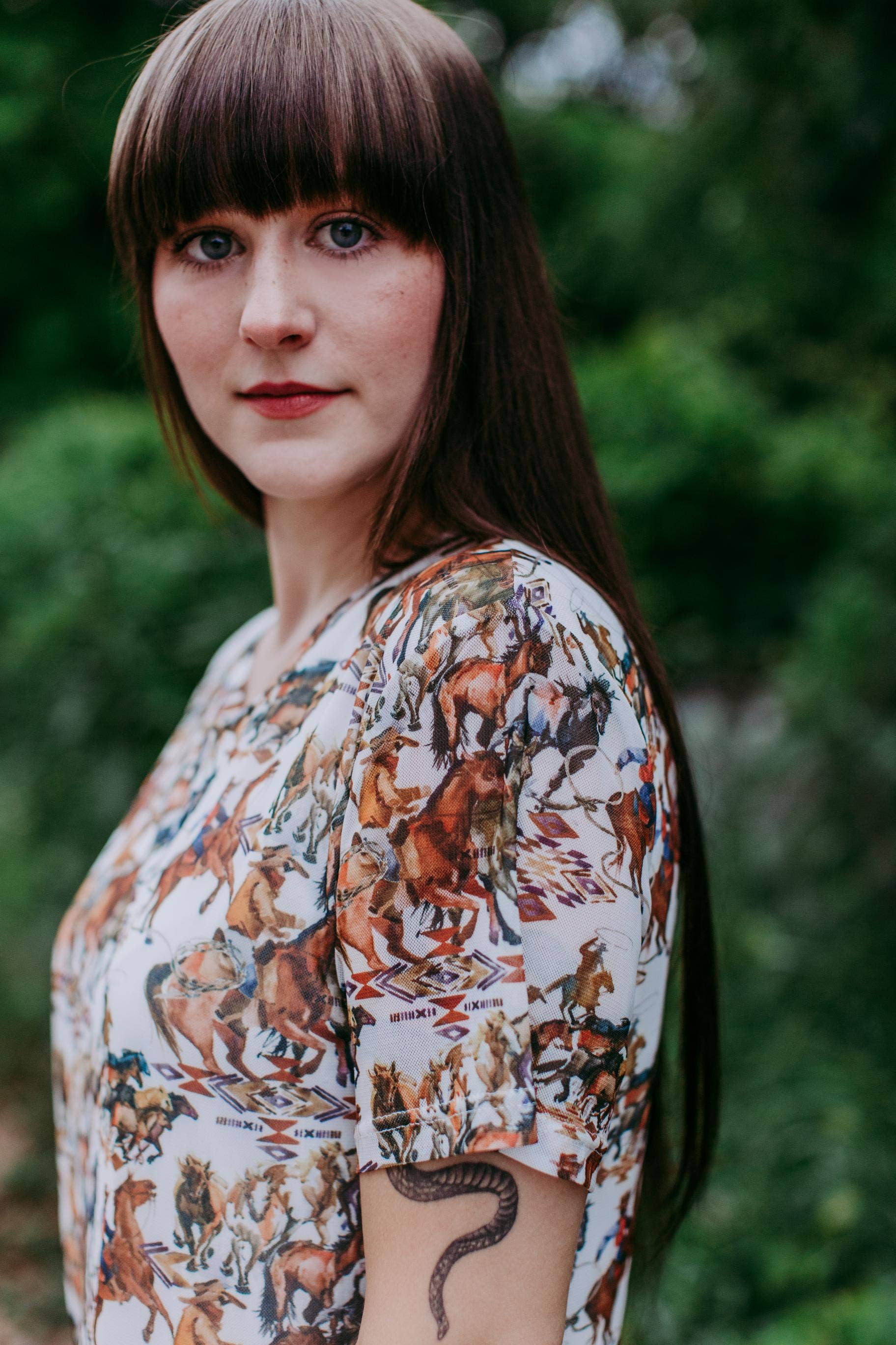 This sheer mesh knee length sheath dress in our fun, colorful, BEST SELLING Buckaroo print is your key to an upsell! Display in your store under graphic tees, blazers, and denim jackets, then pair with boots, belts and accessories...and your customers will want to purchase the entire look! Let's drive that profit higher! Dress is lined with double needle stitched sleeve and bottom hem.