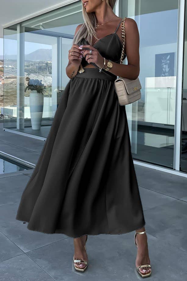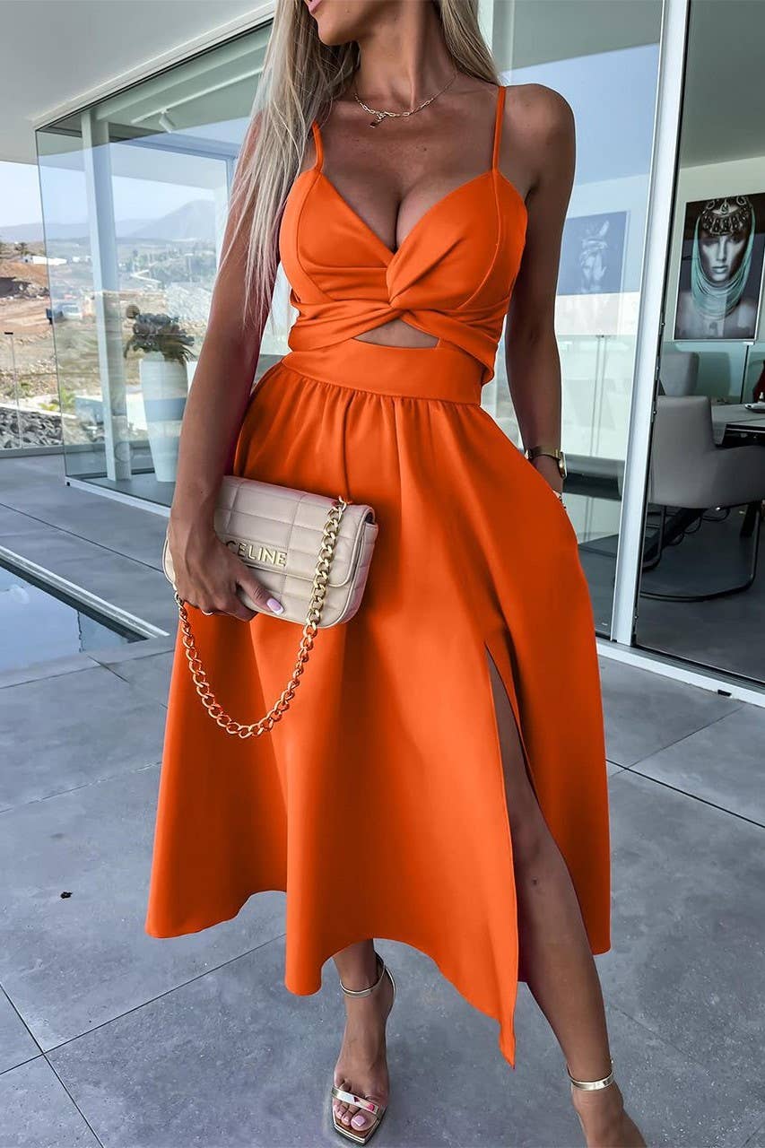 Elevate your evening wardrobe with this plunge twist front cocktail dress in beige. Featuring a sophisticated cutout and a daring slit, it combines modern design with classic elegance. The strappy swing silhouette ensures comfort and flattering movement, making it ideal for cocktail events or special occasions. Crafted to highlight your figure, this dress offers an expert balance of style and allure.